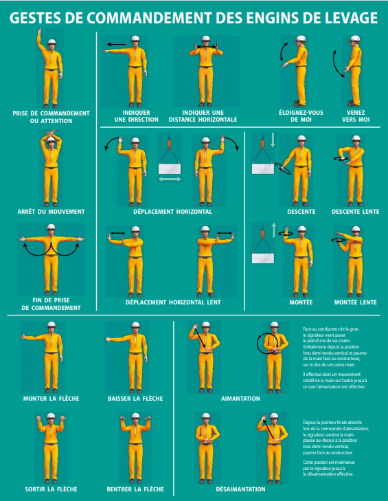 diriger au sol une manoeuvre de levage au moyen des gestes de commandement normalisés